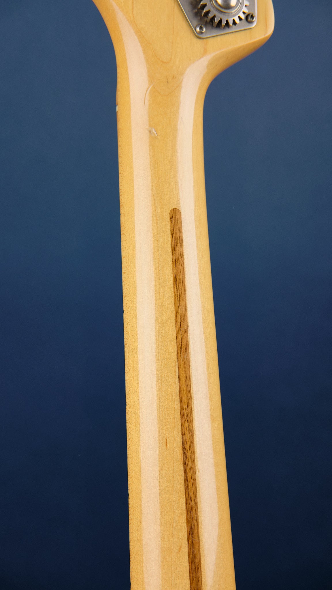 Cosmetic condition is okay for its age. There are notable dings and paint wear found on the bottom strap pin end of the body, as well as an overall discolouration to the finish. There is also the outline of a sticker, which can happen when the finish has had UV exposure with the sticker on. Hardware is fully functional, and plays beautifully with a low action. No case.